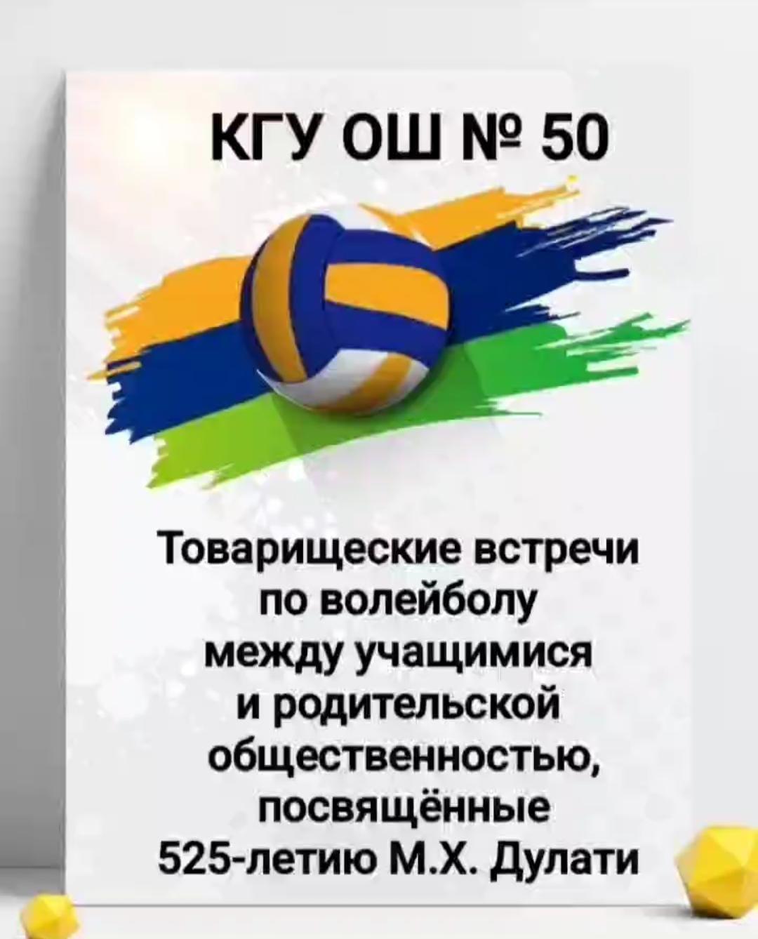№ 50 ЖББМ КММ-де М.Х. Дулатидің 525 жылдығына арналған оқушылар мен ата-аналар қауымы арасында волейбол бойынша жолдастық кездесулер өткізілді.