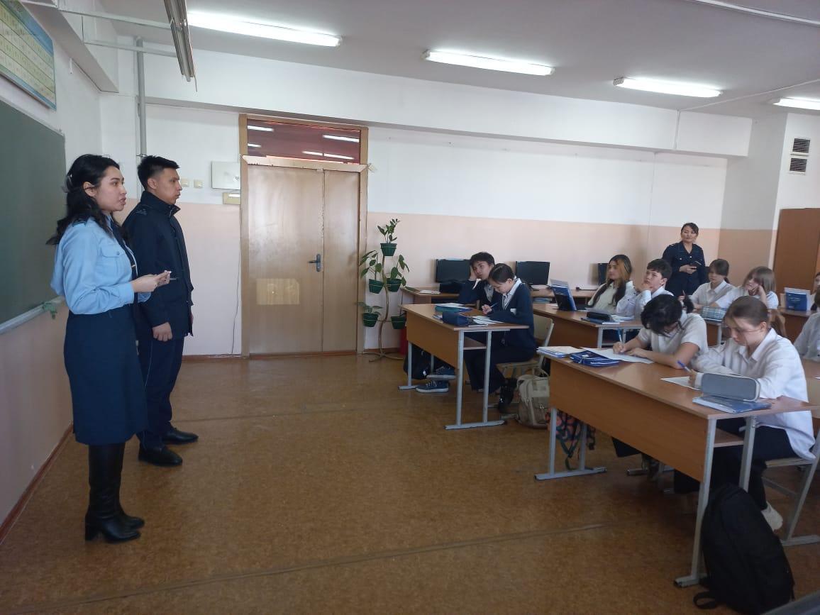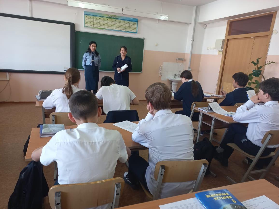 Инспектором ОАП ЛОП в аэропорту города Алматы майором полиции Г. Калдыбековой, инспектором ОАП ЛОП на ст.Алматы-2 старшим лейтенантом полиции А. Кусайбаевой и инспектором службы ЛОП на ст. Кунаева старшим лейтенантом полиции А.Тохан с учащимися 7-9 классов КГУ ОШ № 50 проведены лекции на темы: «Железнодорожная безопасность», «Административные правонарушения», «Запрещенные предметы» и «Посягательство на чужое имущество».