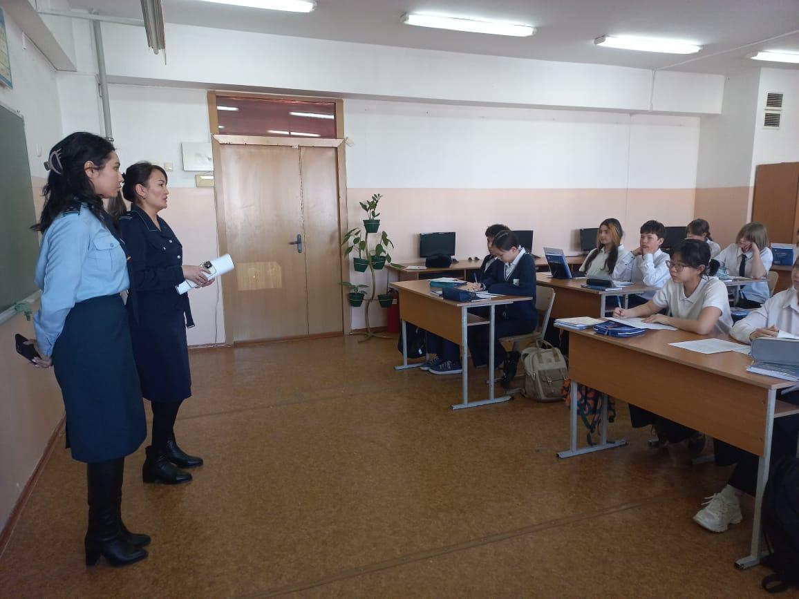 Алматы қаласының әуежайындағы ЖПБ ӘПБ инспекторы полиция майоры Г. Қалдыбекова, Алматы-2 сртанциясындағы ЖПБ ӘПБ инспекторы полиция аға лейтенанты А. Кусайбаева және Қонаев станциясындағы ЖПб қызметінің инспекторы полиция аға лейтенанты А. Тоханмен № 50 ЖББМ 7-9 сынып оқушыларымен «Темір жол қауіпсіздігі», «Әкімшілік құқық бұзушылық», «Әкімшілік құқық бұзушылық» тақырыптарында дәрістер өткізді, «Тыйым салынған заттар» және «Басқа біреудің мүлкіне қол сұғу».