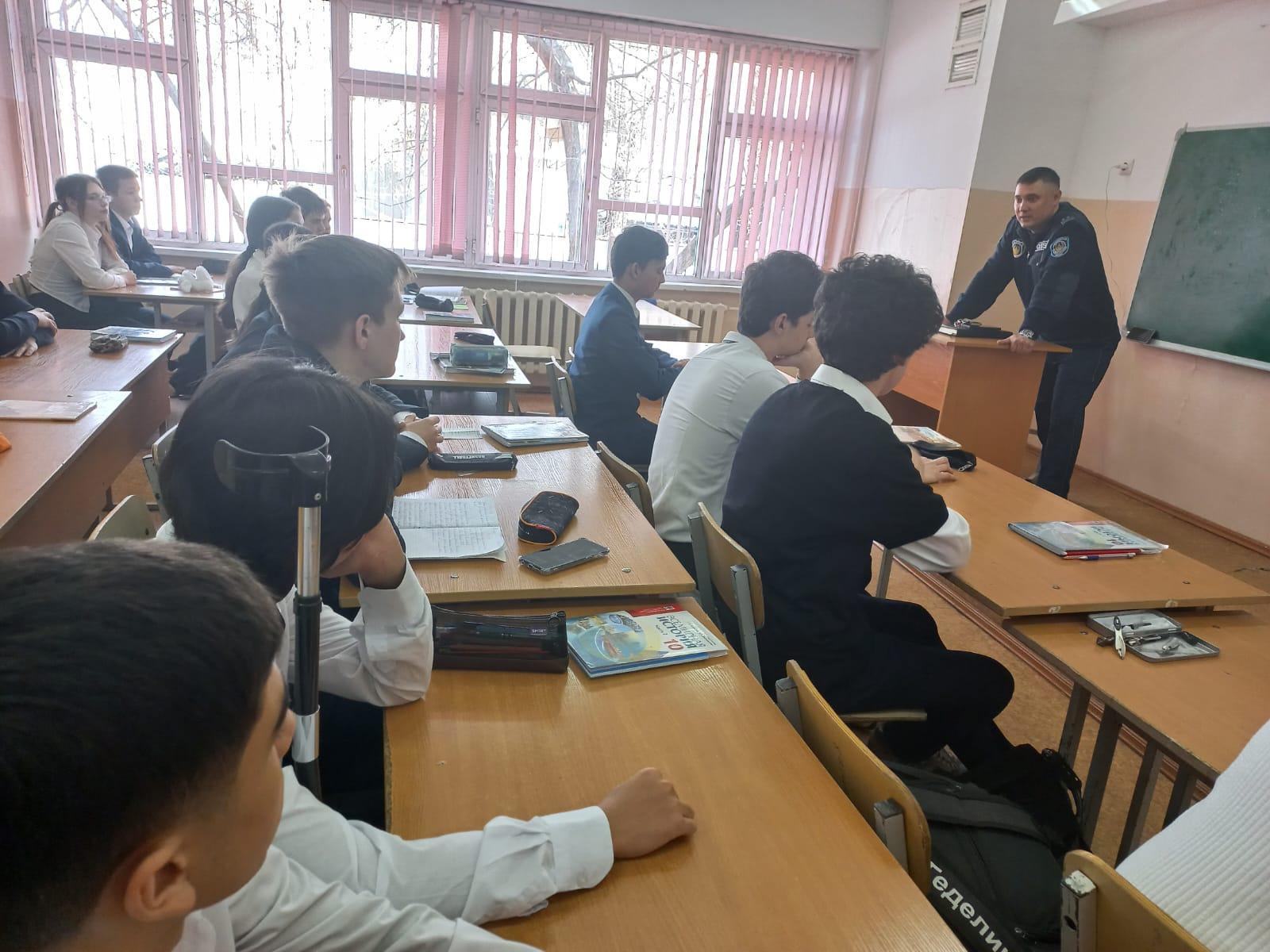 Түрксіб ауданы ПБ ОМПС ОЮП № 50 ЖББМ КММ полиция лейтенанты Р. А. Рысалдиев 10-11 сынып оқушыларымен 97 адам санында «Кәмелетке толмағандардың мопедтер мен электрлік скутерлерге мінгені үшін жауапкершілігі» тақырыбында профилактикалық әңгіме өткізді.
