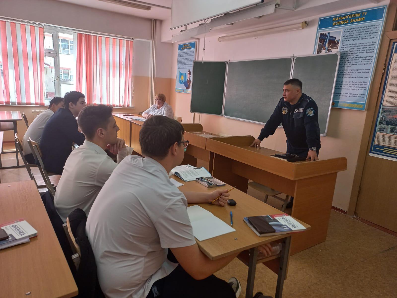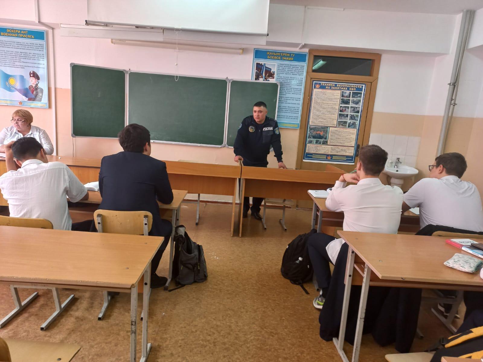 В КГУ ОШ № 50 ОЮП ОМПС УП Турксибского района лейтенантом полиции Рысалдиевым Р.А. с учащимися 10-11 классов в количестве 97 человек проведена профилактическая беседа на тему: «Ответственность несовершеннолетних за езду на мопедах и электрических самокатах».
