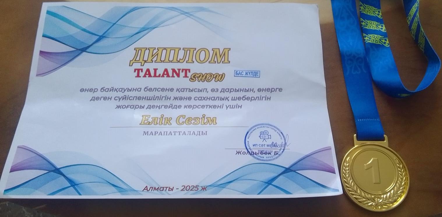 Алматы қаласы, Түріксіб ауданы № 50 ЖББМ КММ 3 «Ә» сынып оқушысы Елік Сезім «Таlant SHOW» өнер байқауына қатысып жүлделі «Бас жүлдені» жеңіп алды.