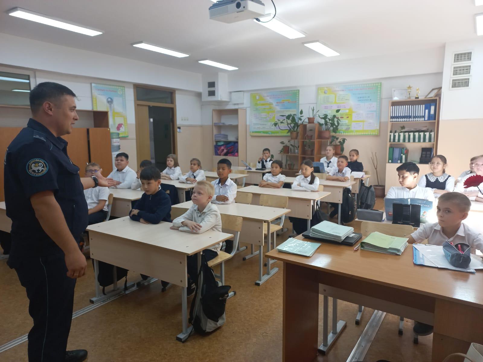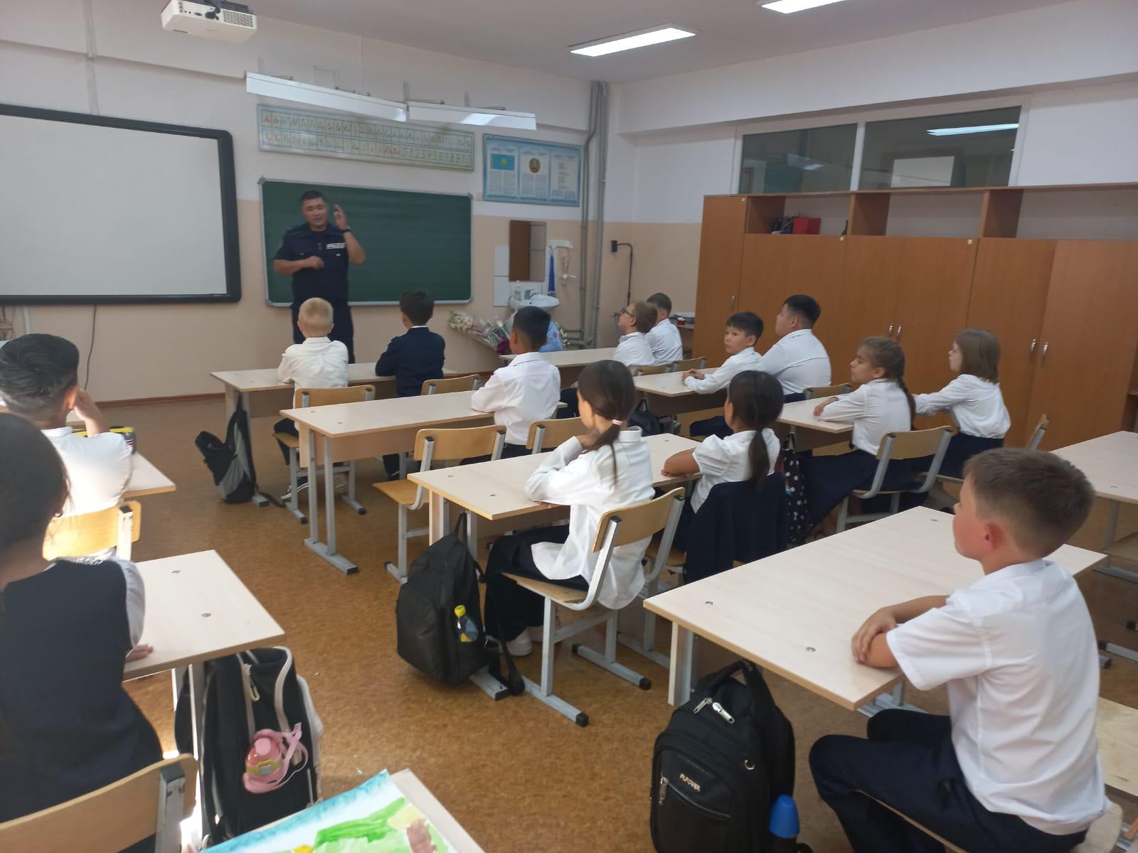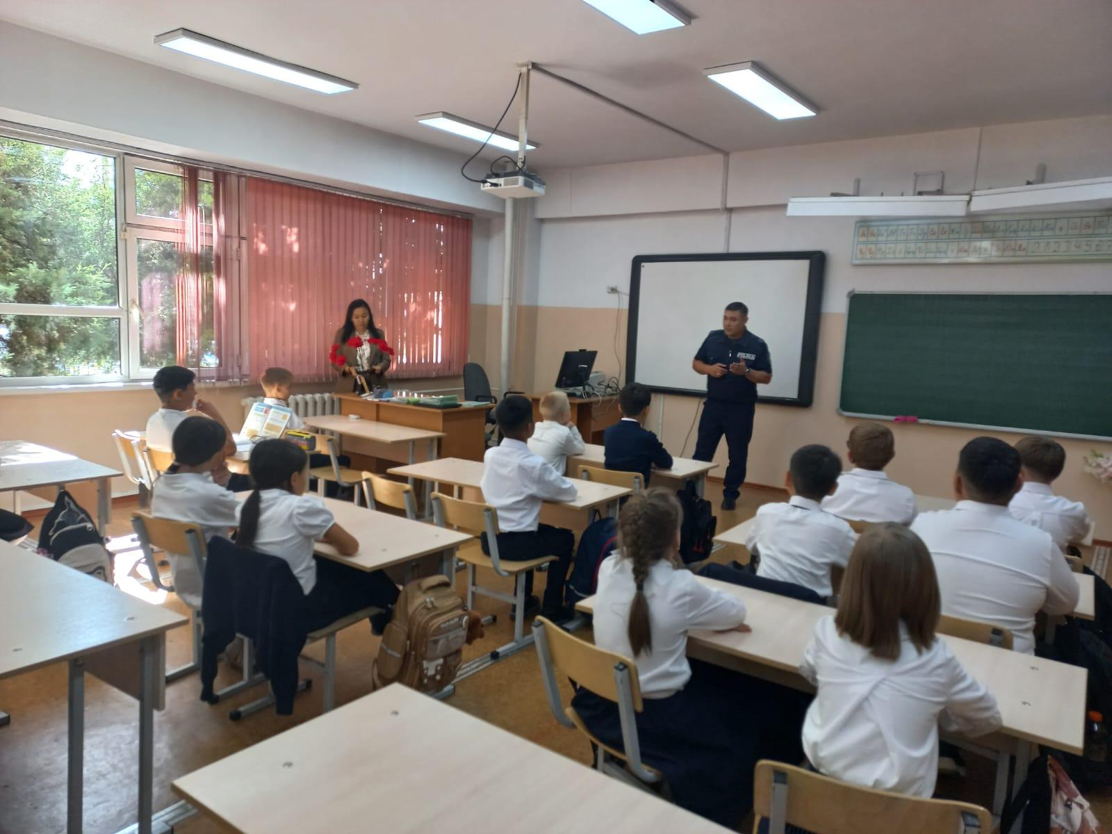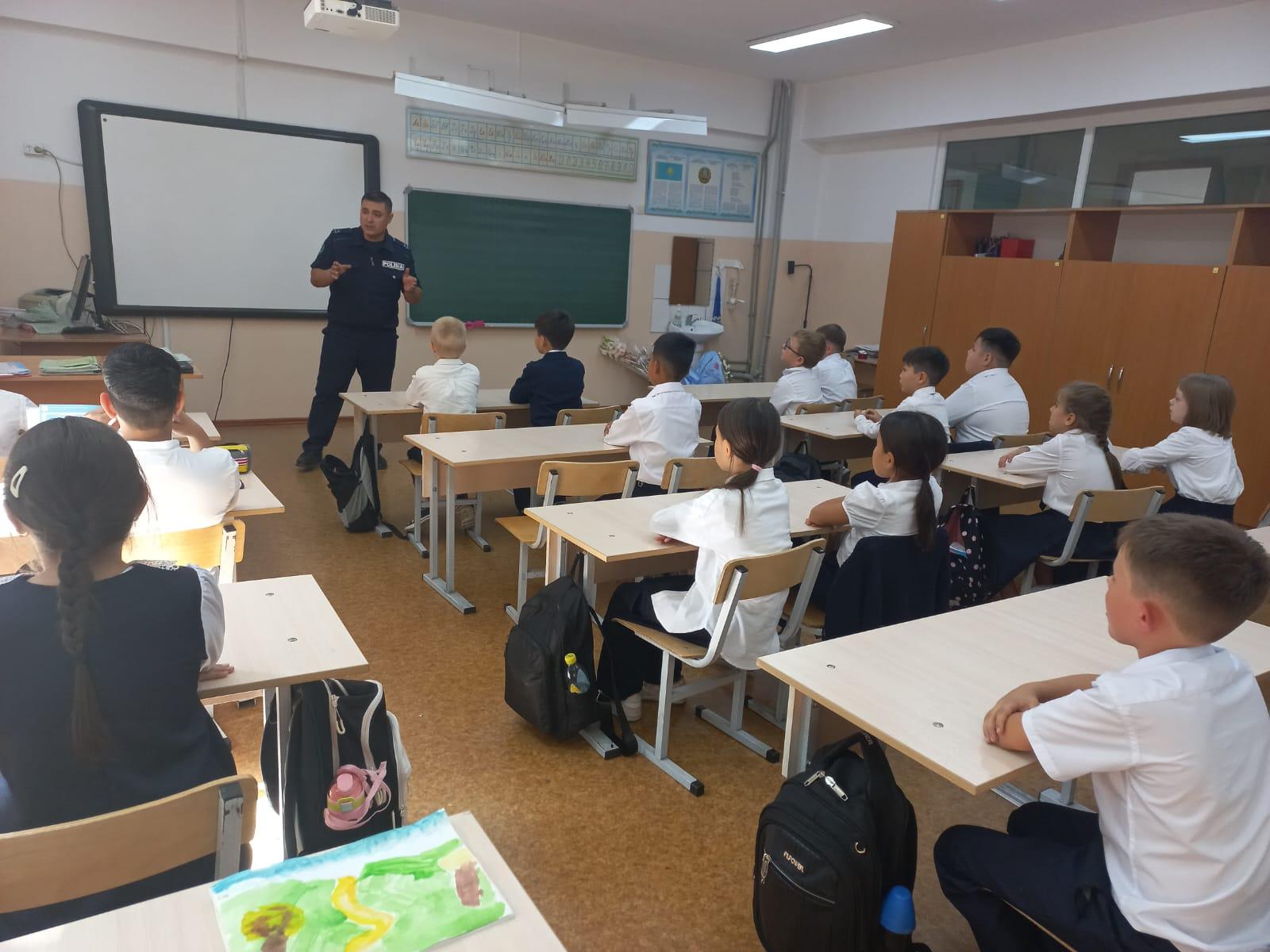 «Зейін-балалар!» балалардың жол-көлік жарақаттануының алдын алу, сондай-ақ балалардың көшелер мен жолдардағы қауіпсіз мінез-құлыққа байланысты дағдыларын бекіту мақсатында Түрксіб ауданы ПБ ОМПС ОЮП № 50 ЖББМ КММ полиция лейтенанты Р. А. Рысалдиев бастауыш сынып оқушыларымен «Балаларға жол ережелерін білу керек» түсіндірме әңгіме өткізді.
