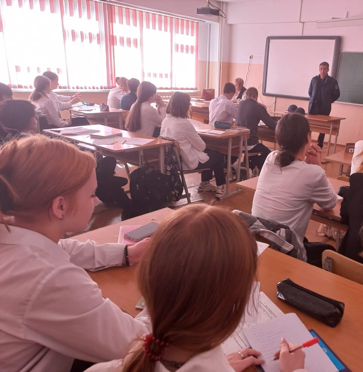 Түрксіб ауданы ПБ ОМПС ОЮП № 50 ЖББМ КММ полиция аға лейтенанты Е.Н. Жұманов 7-9 сынып оқушыларымен «Өз-өзіне қол жұмсауға, балалар порнографиясына, есірткі құралдарын жарнамалауға шақыратын әлеуметтік желілер топтарына тартудың алдын алу» тақырыбында әңгіме өткізді.