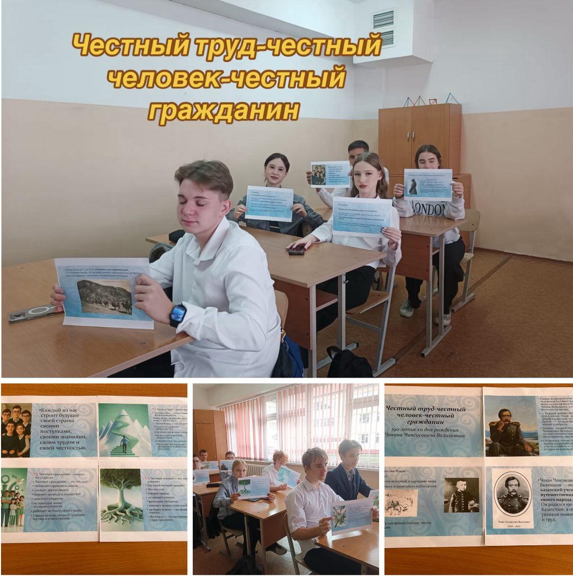 № 50 ЖББМ КММ – де 1-11 сынып жетекшілері оқушылармен Шоқан Шыңғысұлы Уәлихановтың туғанына 190 жыл толуына орай құндылықтарға сәйкес «Адал азамат – адал еңбек-адал табыс» бойынша сынып сағаттарын өткізді.