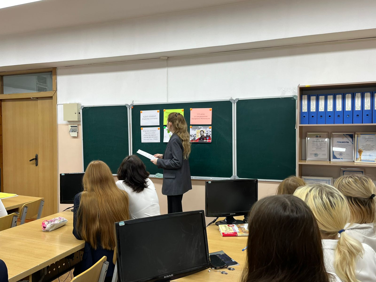 В КГУ ОШ № 50 классными руководителями 1-11 классов с учащимися проведены классные часы по «АДАЛ АЗАМАТ»: «Единство и согласие», посвящённый 115-летию со дня рождения Бауыржана Момышулы.