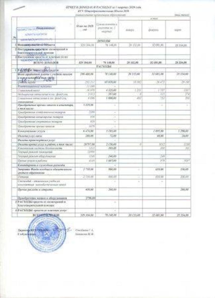 » Отчет о доходах и расходах за 1 квартал 2020 года