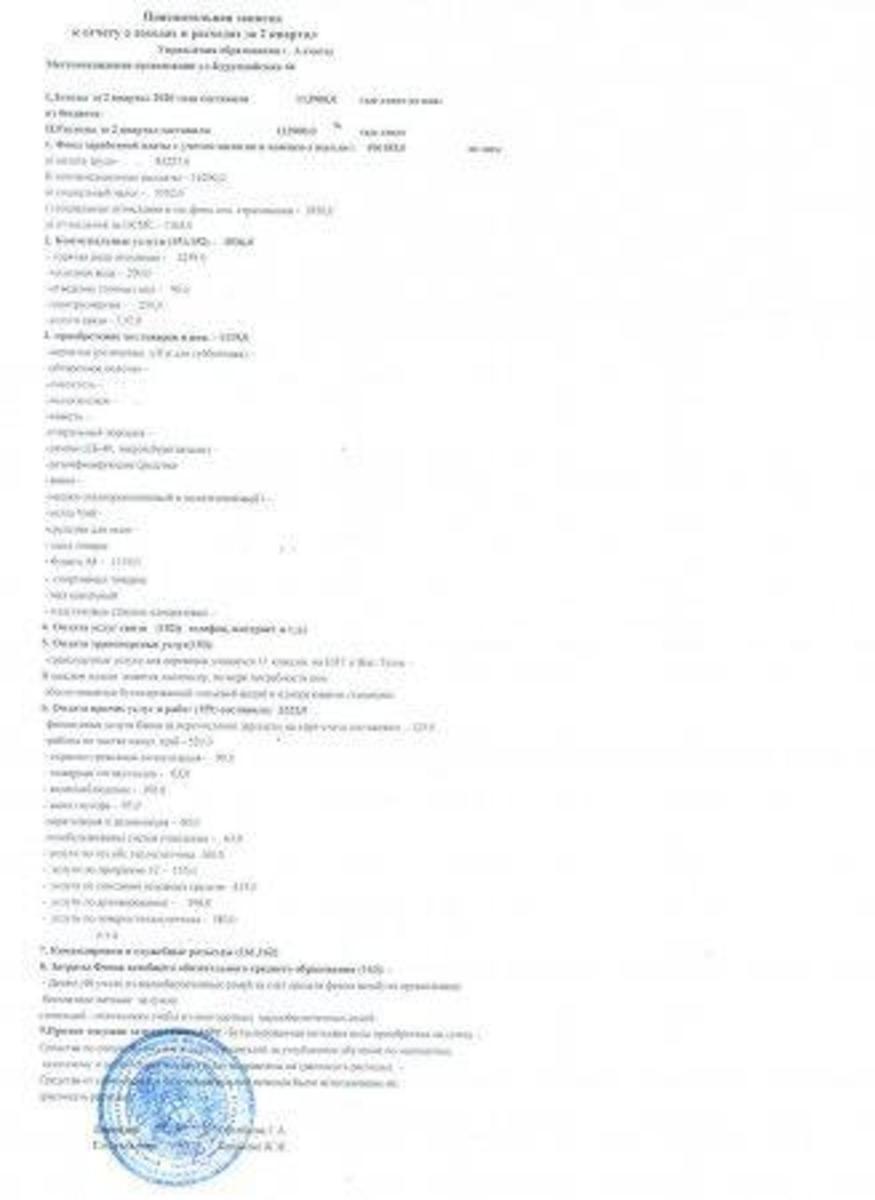 » Отчет о доходах и расходах за 2 квартал 2020 года