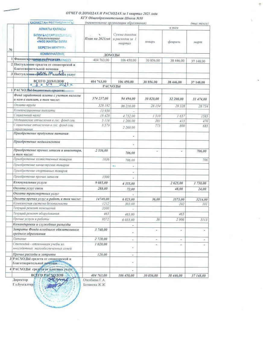 » Отчет о доходах и расходах за 1 квартал 2021 года