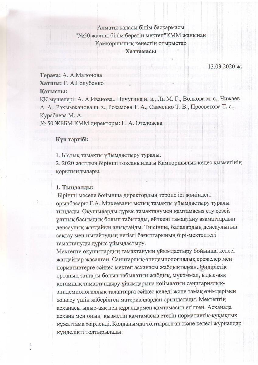 13 наурыз 2020 0 1 2 3 4 5 Қамқоршылық кеңес отырысының хаттамасы. Протокол заседания Попечительского Совета