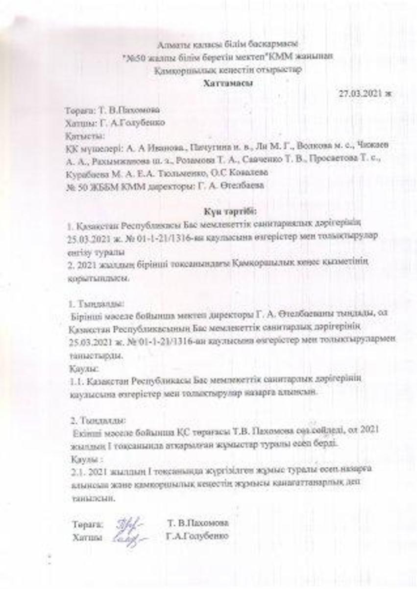 27 наурыз 2021 0 1 2 3 4 5 Қамқоршылық кеңес отырысының хаттамасы. Протокол заседания Попечительского Совета
