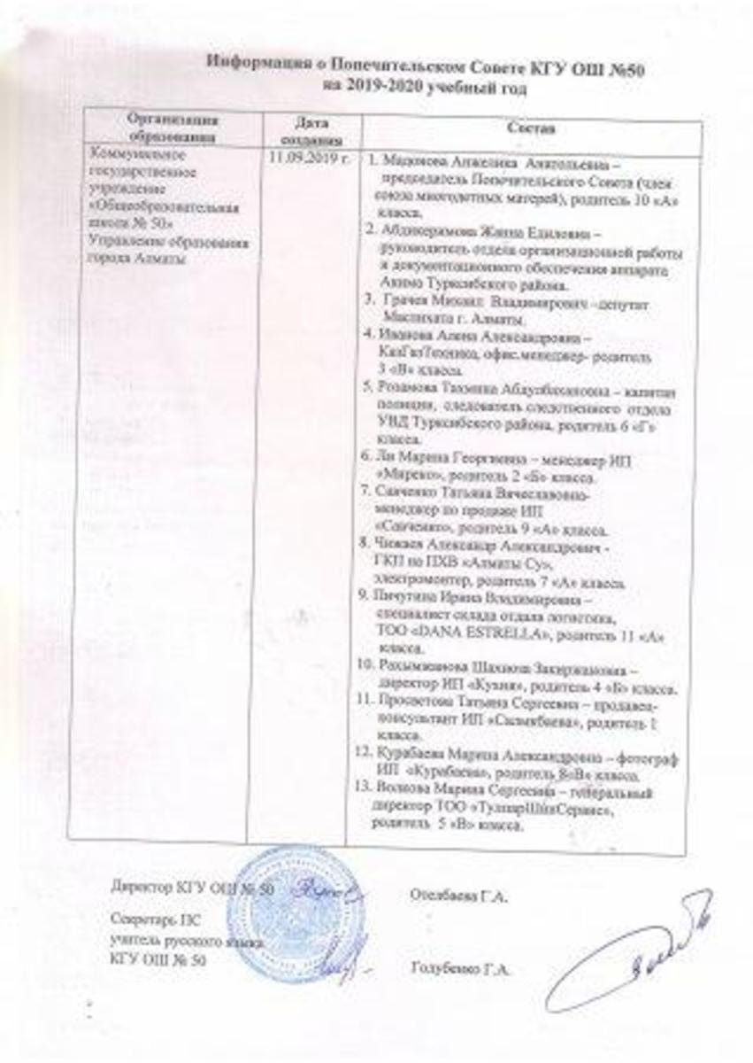 Қамқоршылық кеңестің құрамы. Состав Попечительского совета