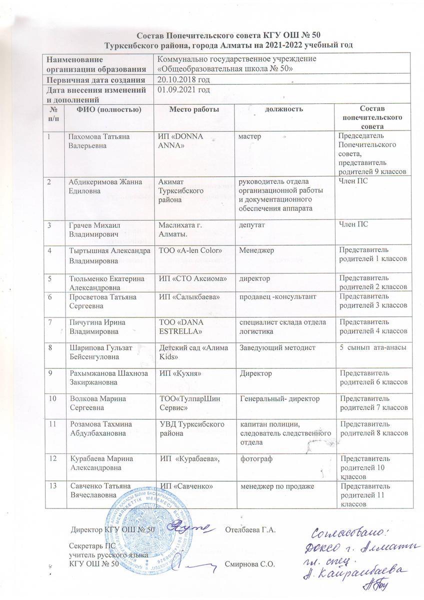 Қамқоршылық кеңестің құрамы. Состав Попечительского совета