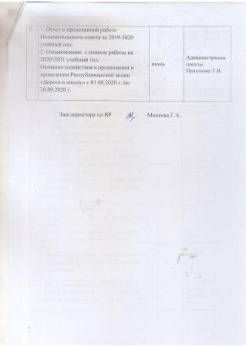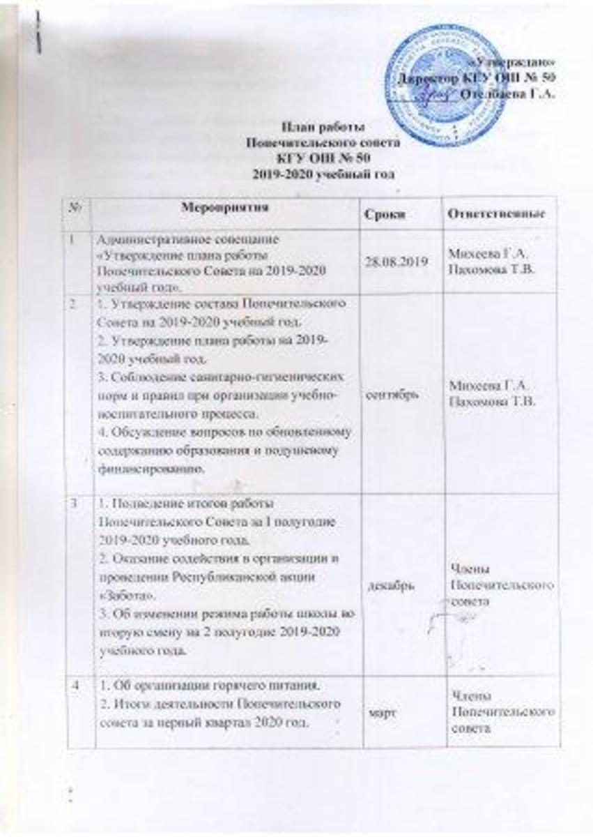 » План работы Попечительского совета на 2019-2020 учебный год