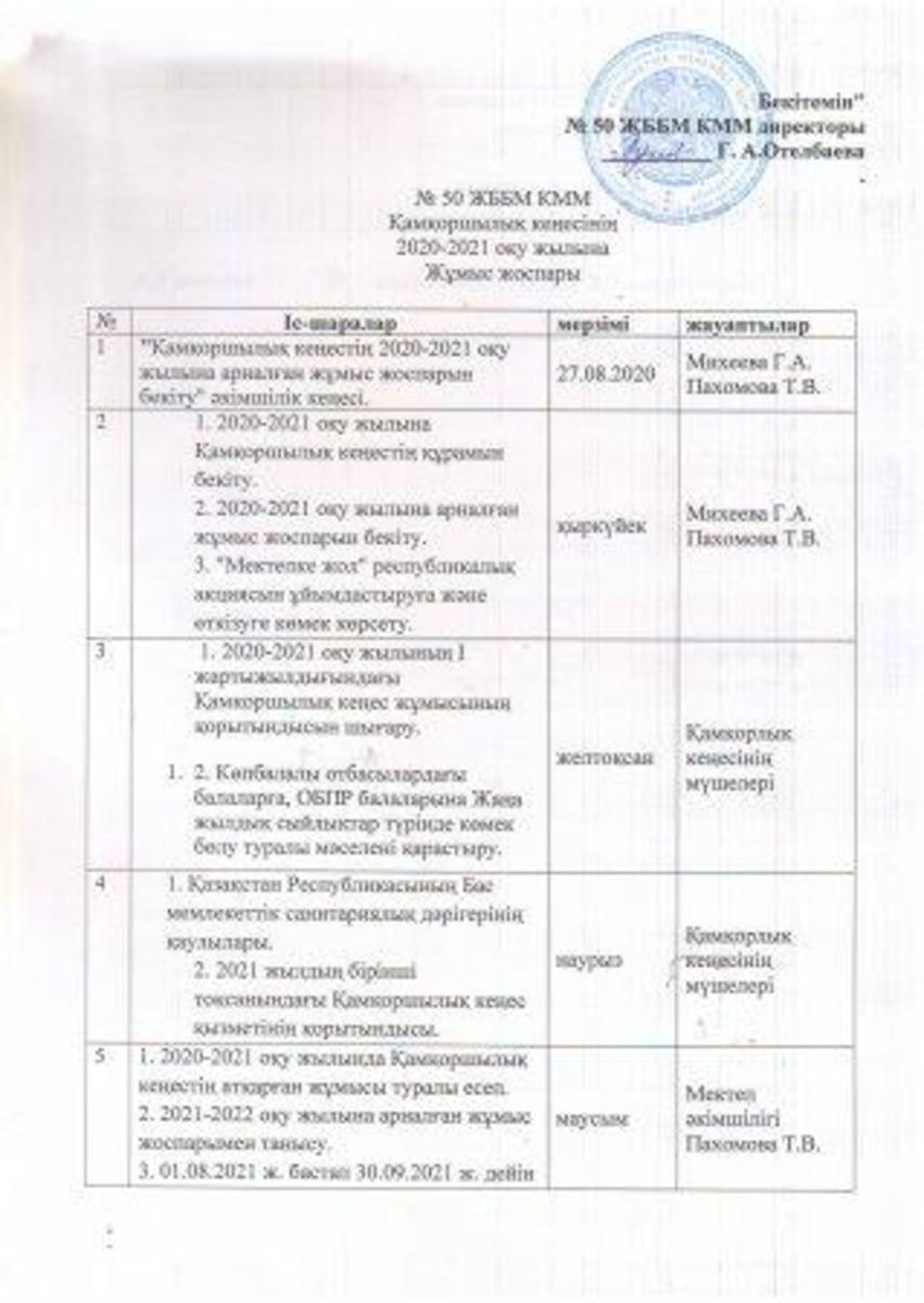 01 қыркүйек 2020 0 1 2 3 4 5 Қамқоршылық кеңестің 2020-2021 оқу жылына арналған жұмыс жоспары. План работы Попечительского совета на 2020-2021 учебный год