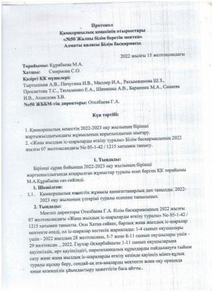 15 желтоқсан 2022 0 1 2 3 4 5 2022 жылдың 4 тоқсанындағы Қамқоршылық кеңес отырысының хаттамасы. Протокол заседания Попечительского совета за 4 квартал 2022г.