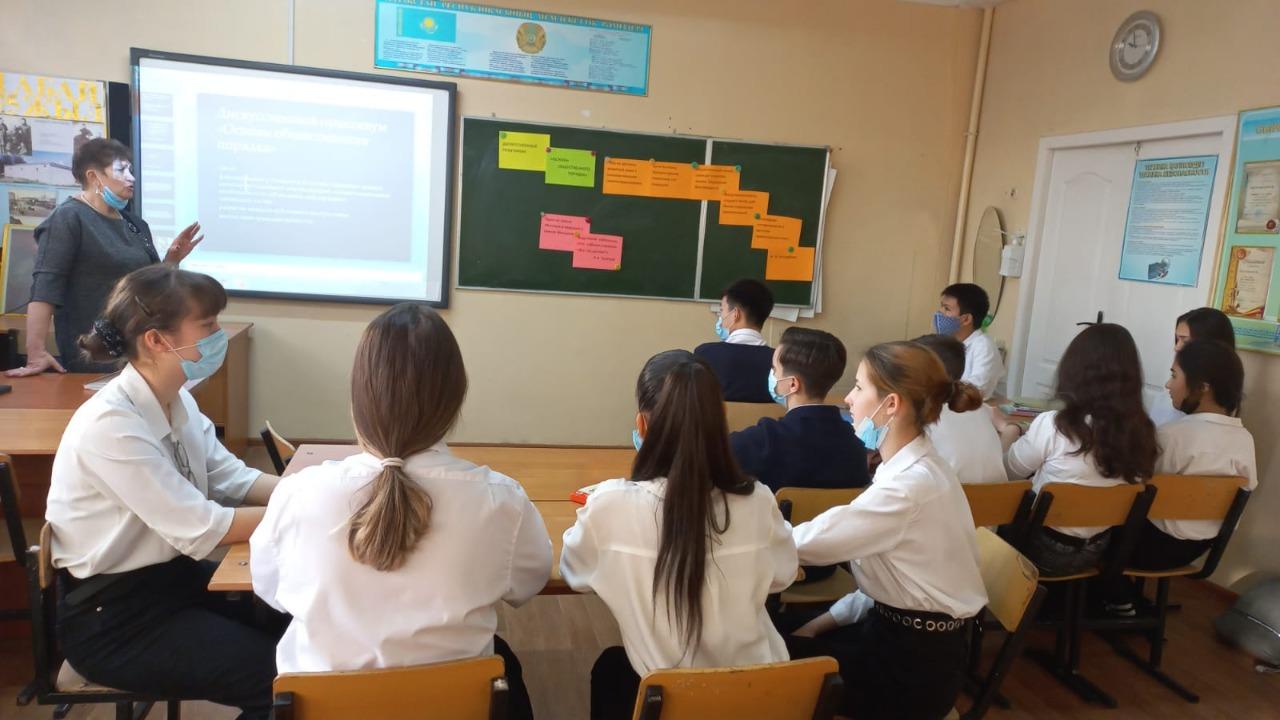 В КГУ ОШ № 50 28 сентября 2021 г. учителем истории, руководителем клуба «Адал Ұрпақ Некрасовой Н.М. с учащимися 10-х классов, членами клуба «Адал Ұрпақ» проведен дискуссионный практикум «Основы общественного сознания».