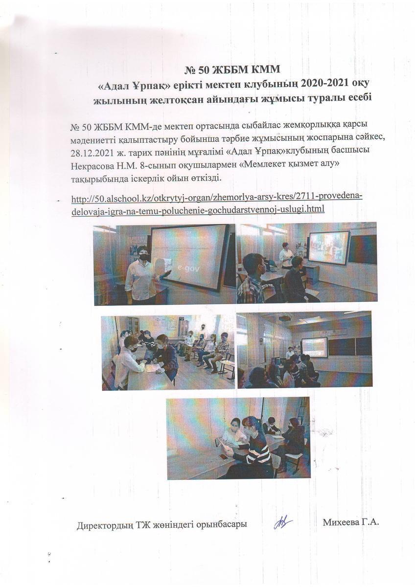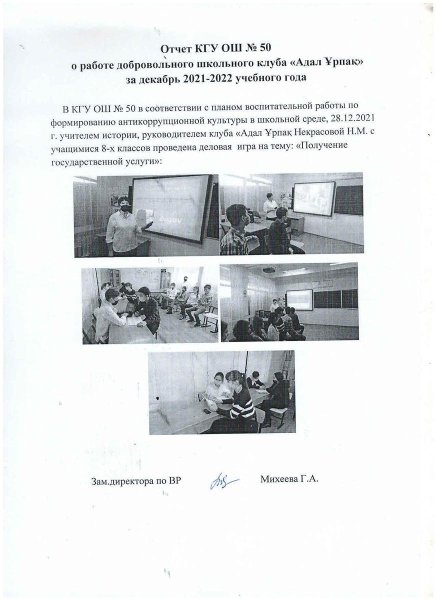 28 желтоқсан 2021 0 1 2 3 4 5 «Адал ұрпақ» ерікті мектеп клубының 2021 жылдың желтоқсан айына есебі. Отчет добровольного школьного клуба "Адал Ұрпақ" за декабрь 2021г.