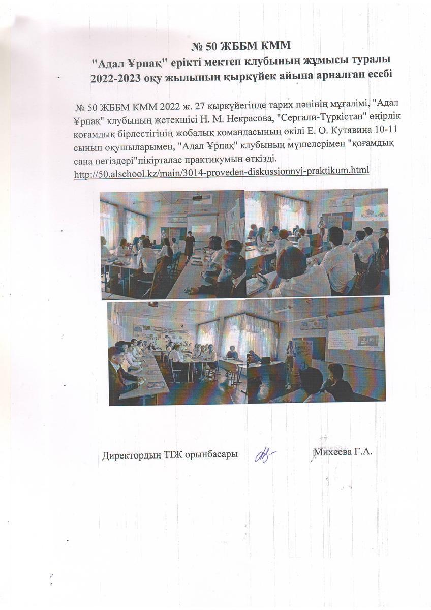«Адал ұрпақ» ерікті мектеп клубының 2022 жылдың қыркүйек айына есебі