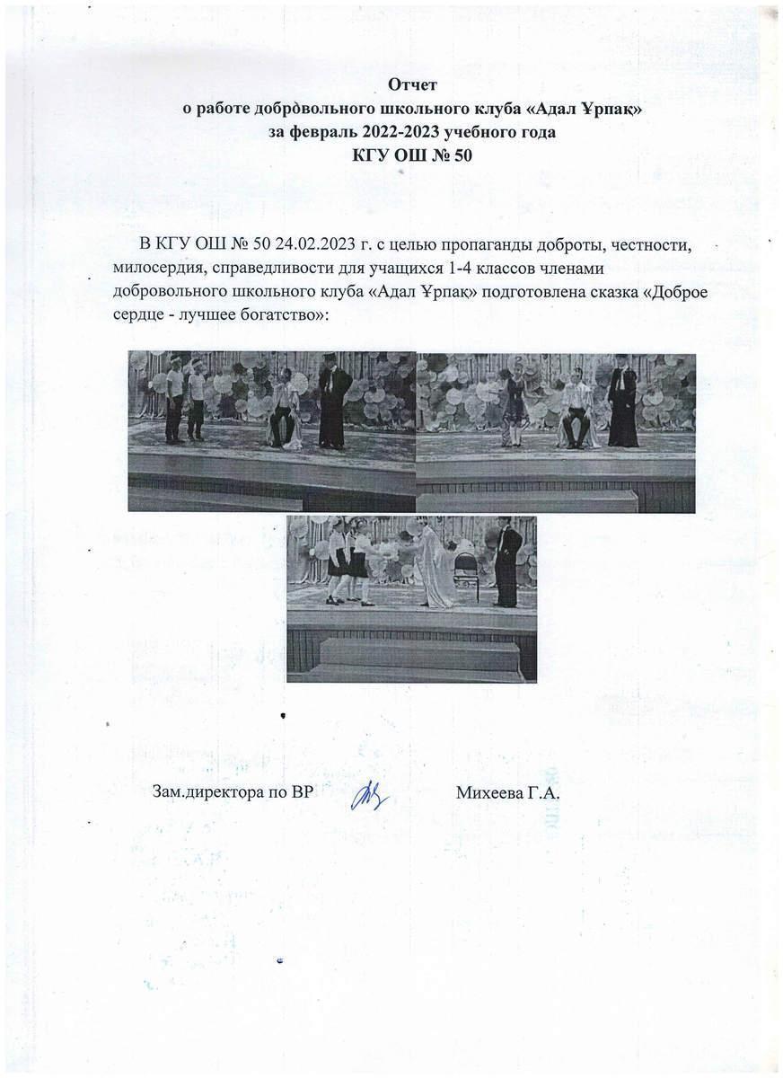 » «Адал ұрпақ» ерікті мектеп клубының 2023 жылдың ақпан айына есебі