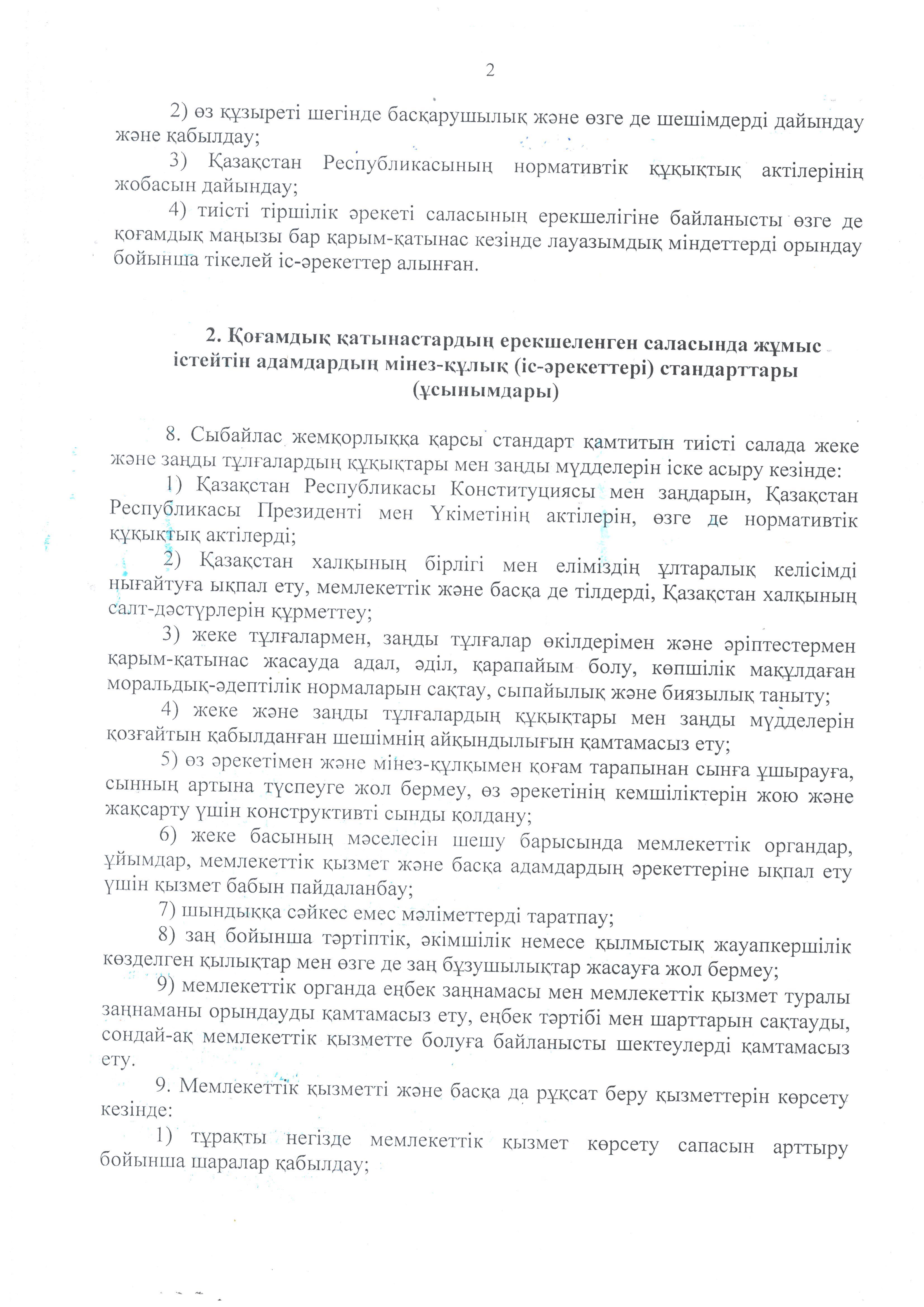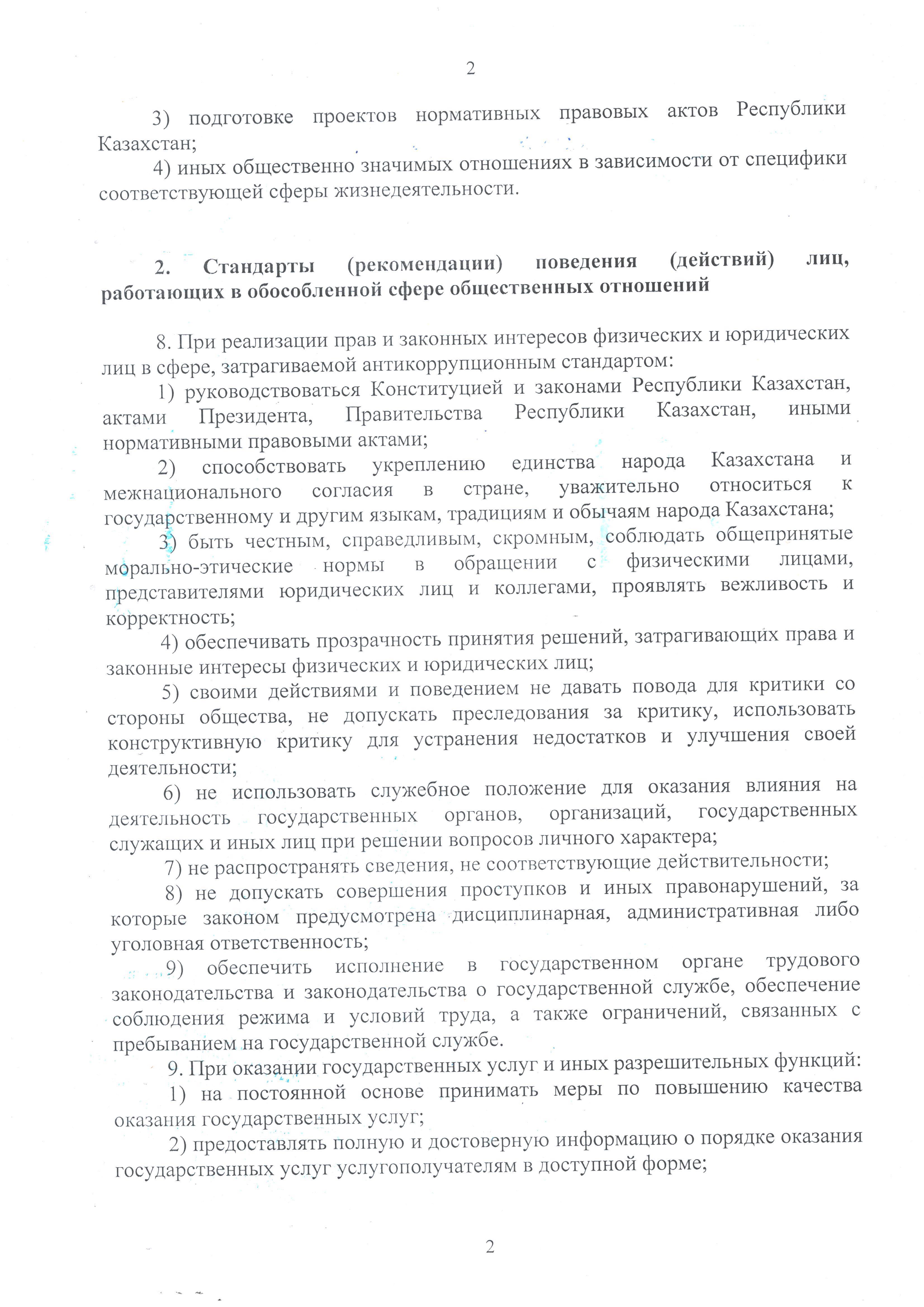 Сыбайлас жемқорлыққа қарсы стандартты бекіту туралы.Об утверждении антикоррупционного стандарта.