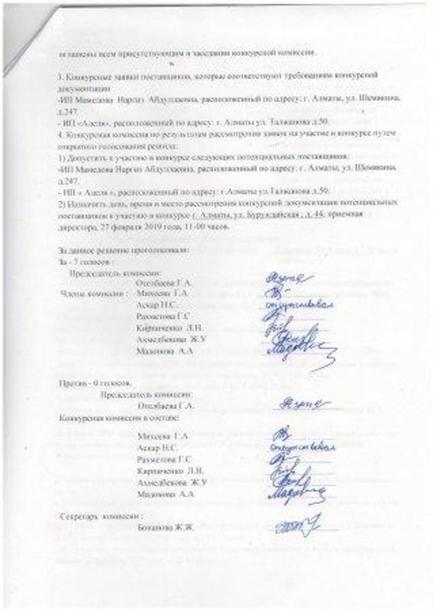 протокол заседания Попечительского Совета КГУ ОШ №50