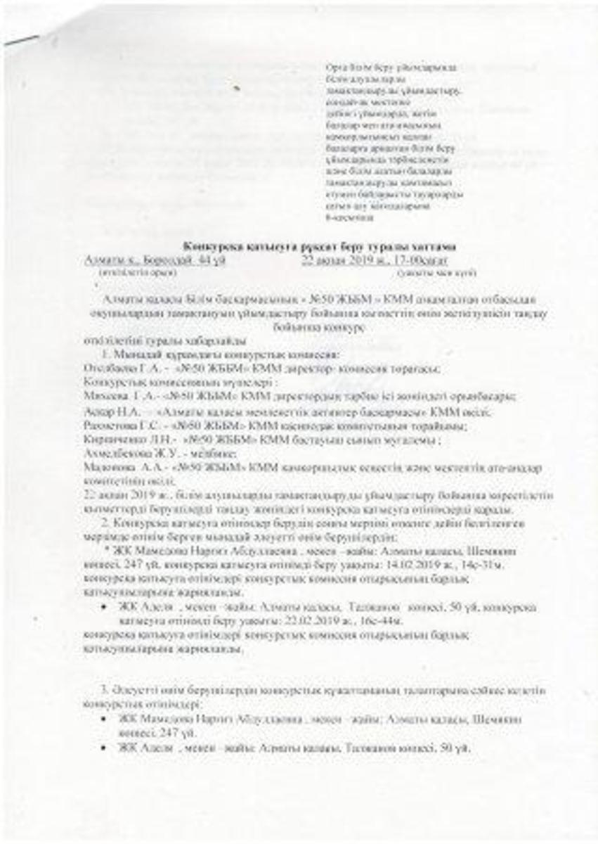 КГУ «Общеобразовательная школа №50 » Управления образования города Алматы