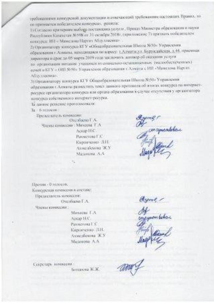 Протокол итогов конкурса выбора поставщика услуг по горячему питанию