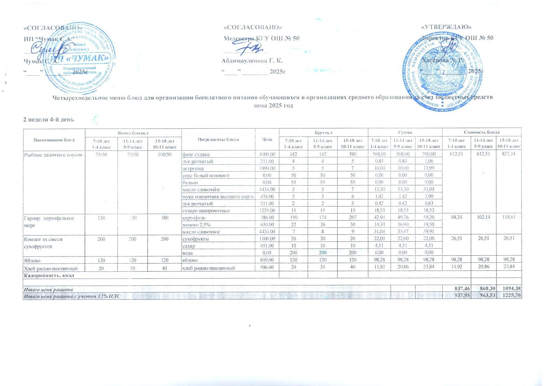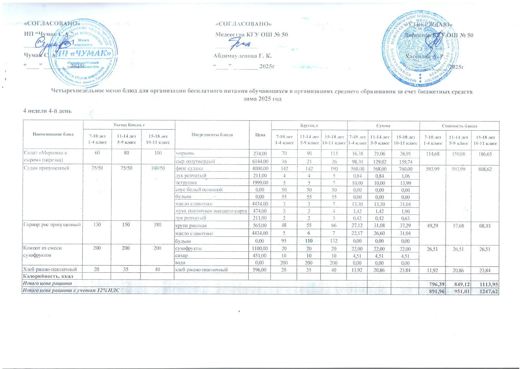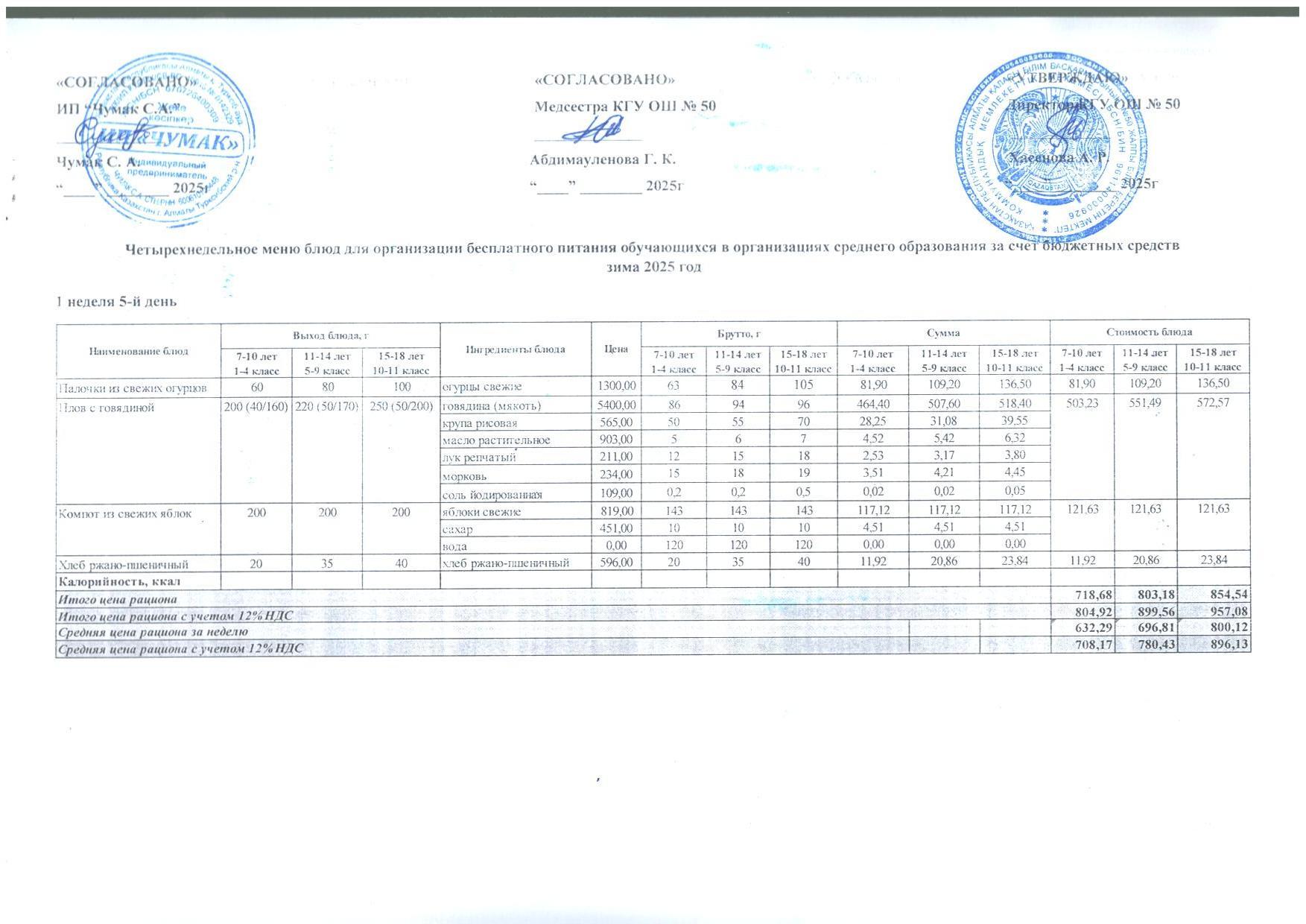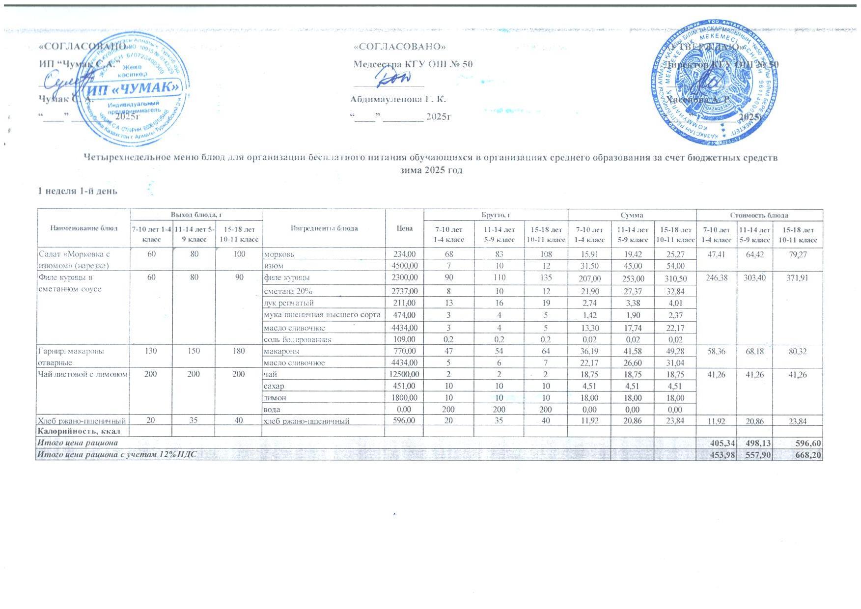 2024ж. СУСН қыс- көктем және 1-4 сыныпқа ас мәзірі. Меню 1-4кл. и 5-11 СУСН зима-весна 2024г.