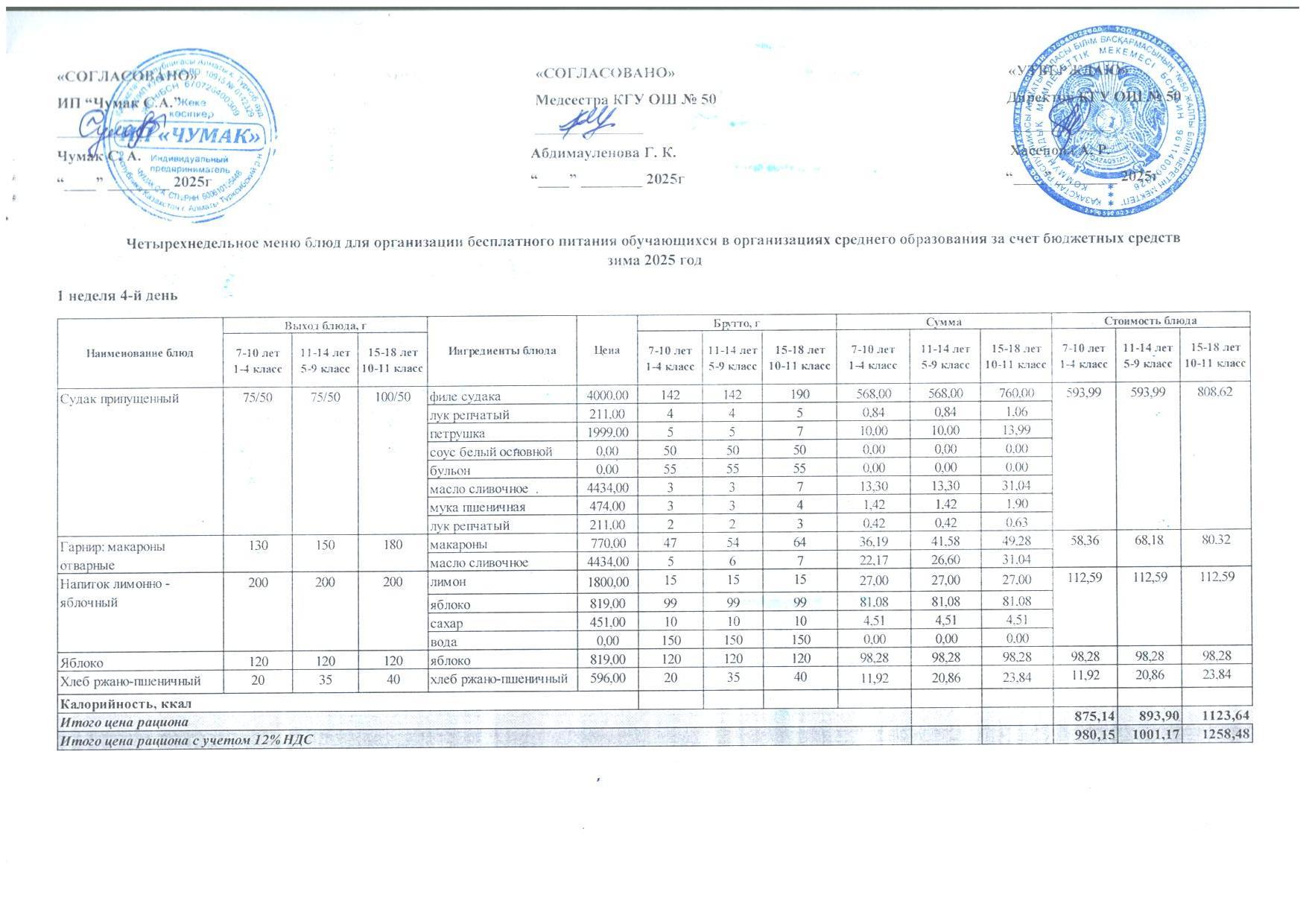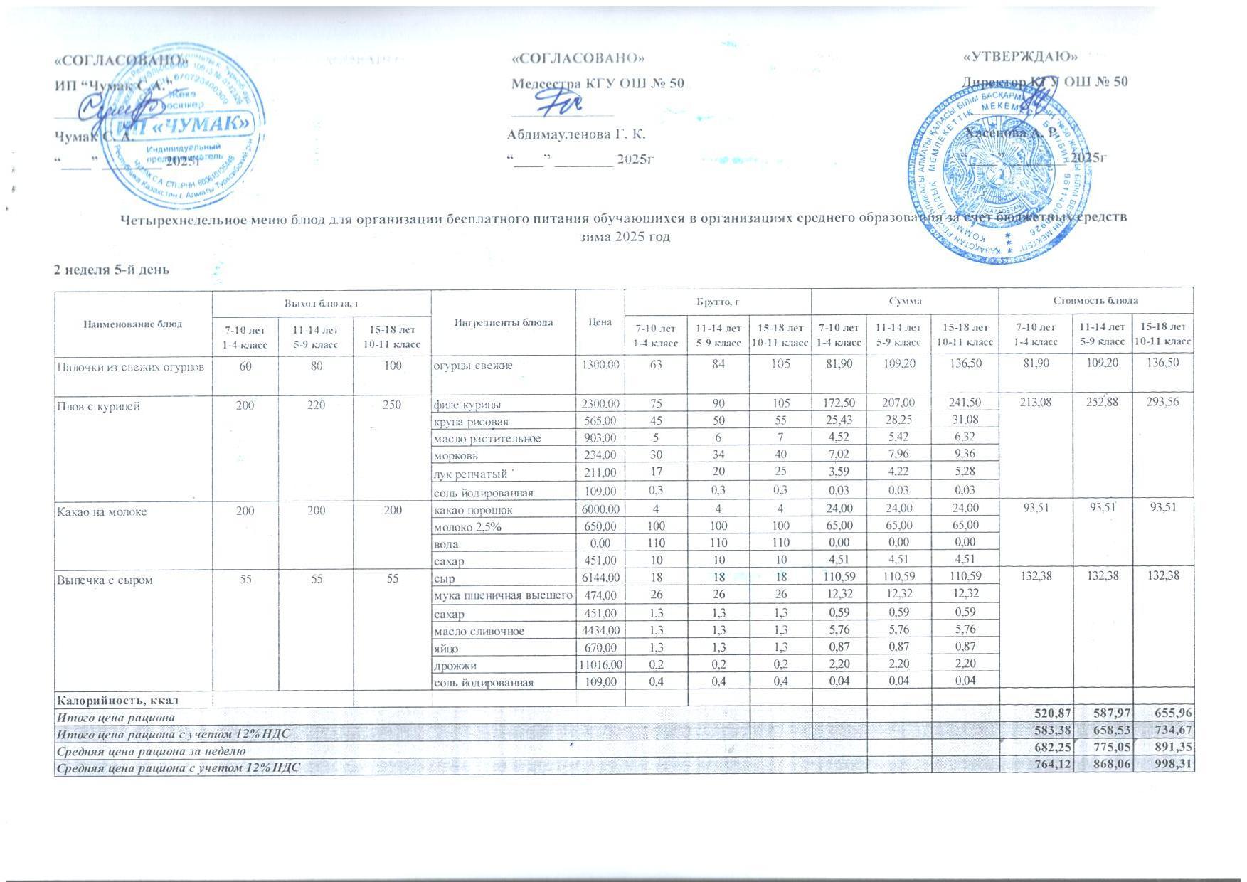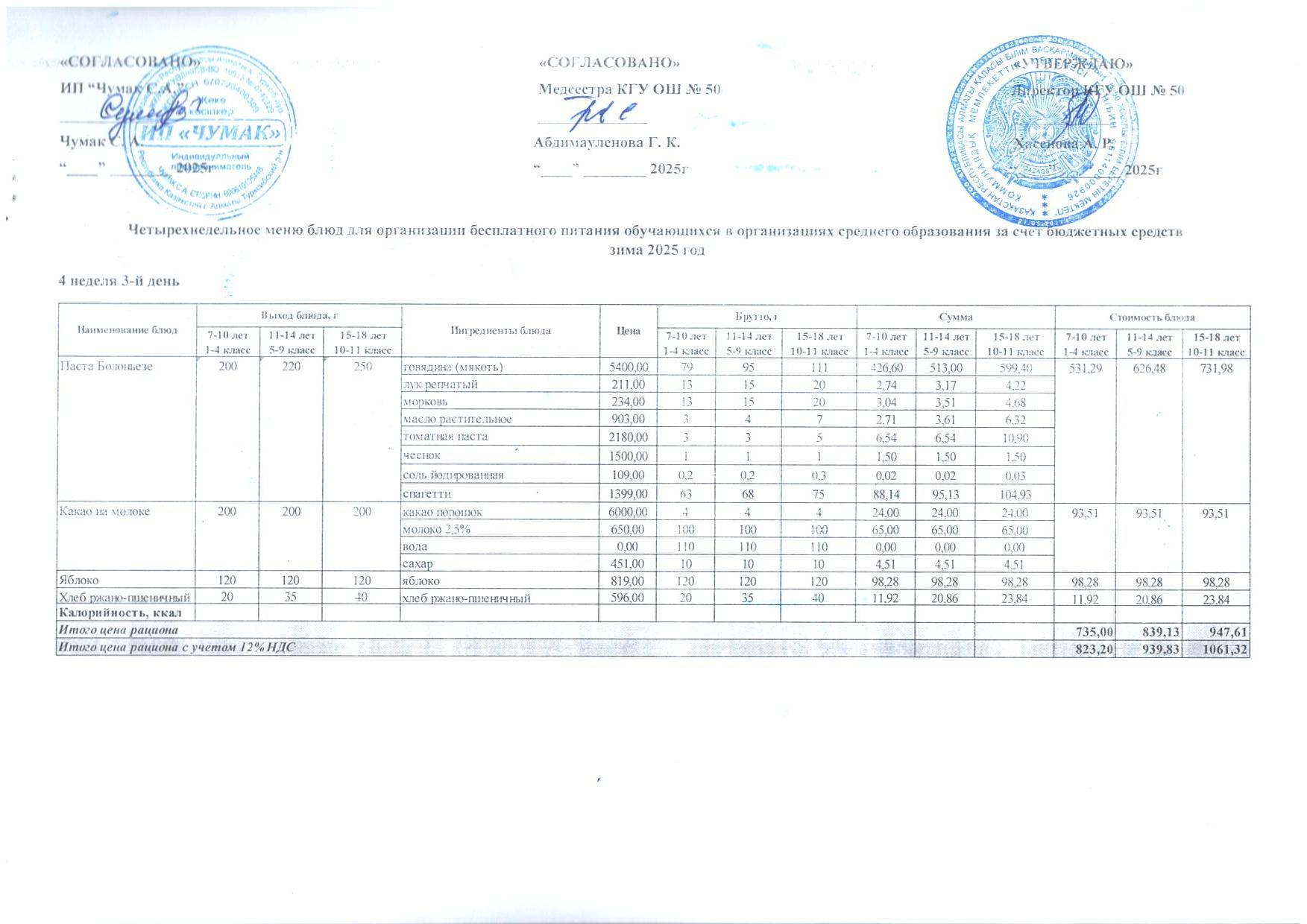 2024ж. СУСН қыс- көктем және 1-4 сыныпқа ас мәзірі. Меню 1-4кл. и 5-11 СУСН зима-весна 2024г.