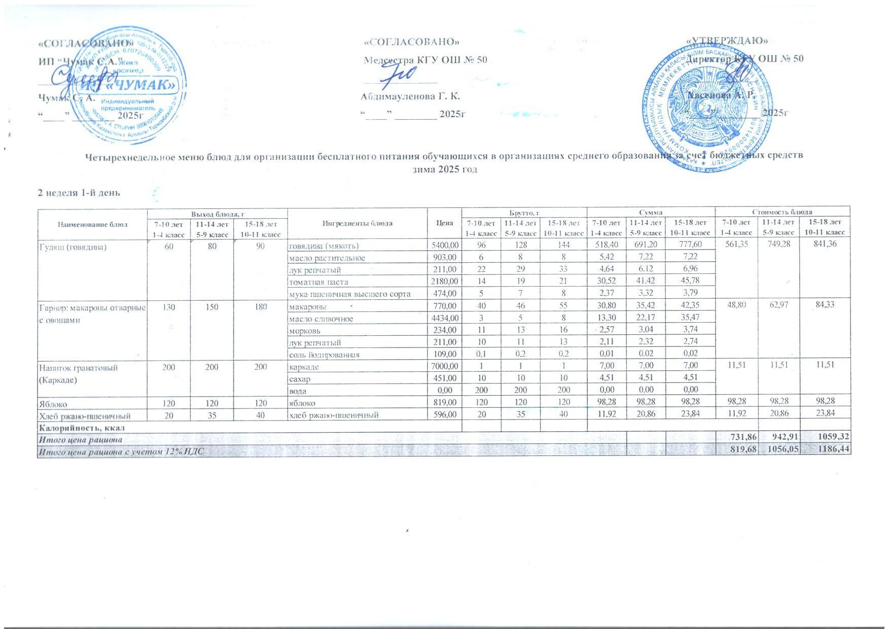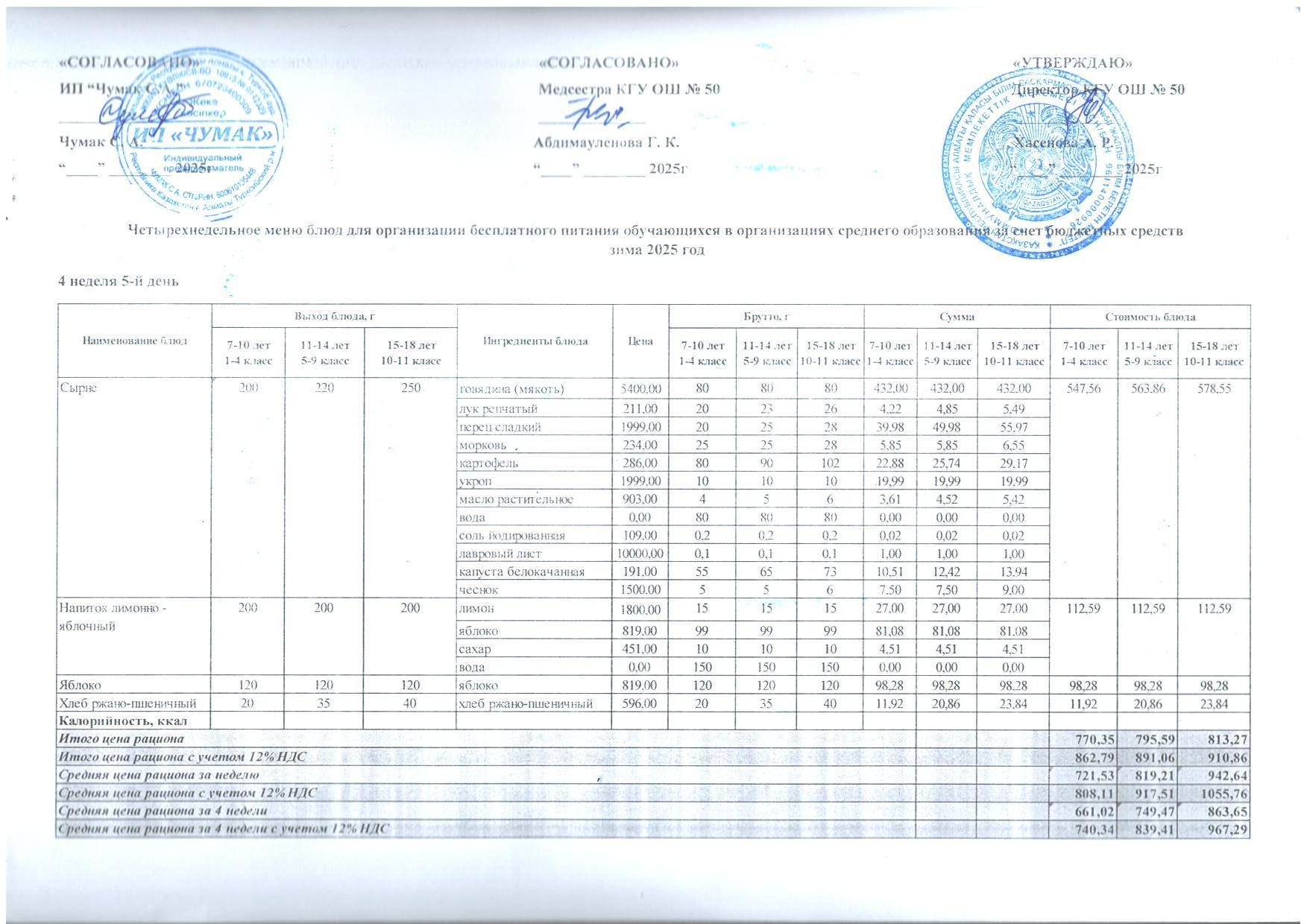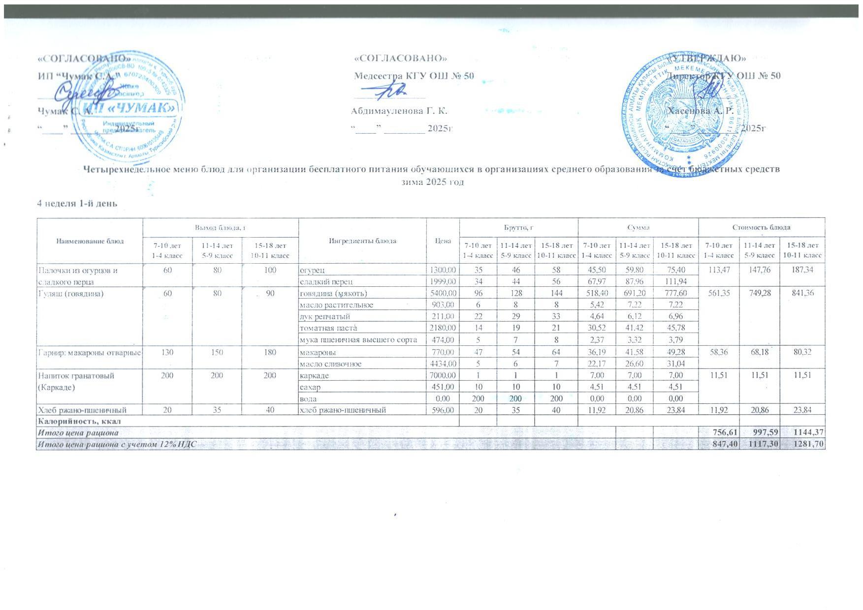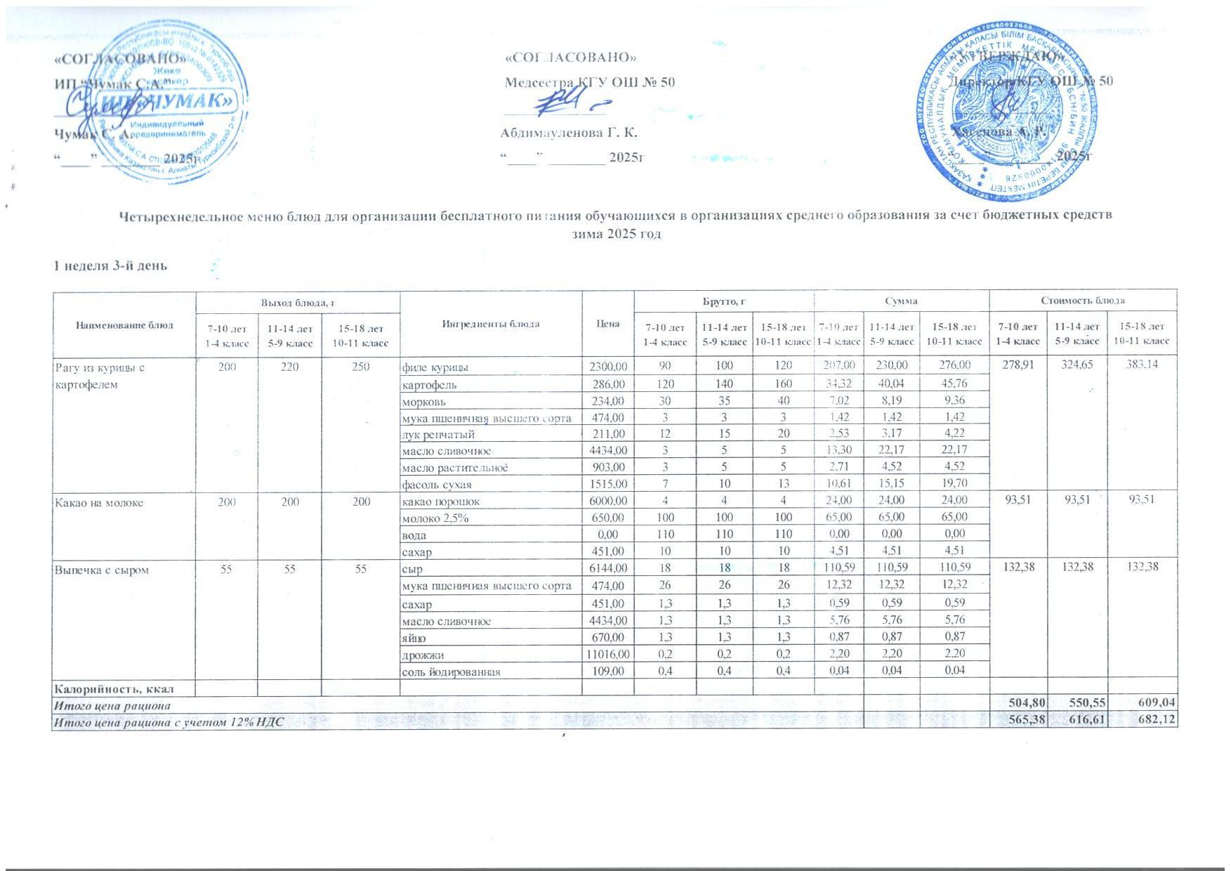 2024ж. СУСН қыс- көктем және 1-4 сыныпқа ас мәзірі. Меню 1-4кл. и 5-11 СУСН зима-весна 2024г.
