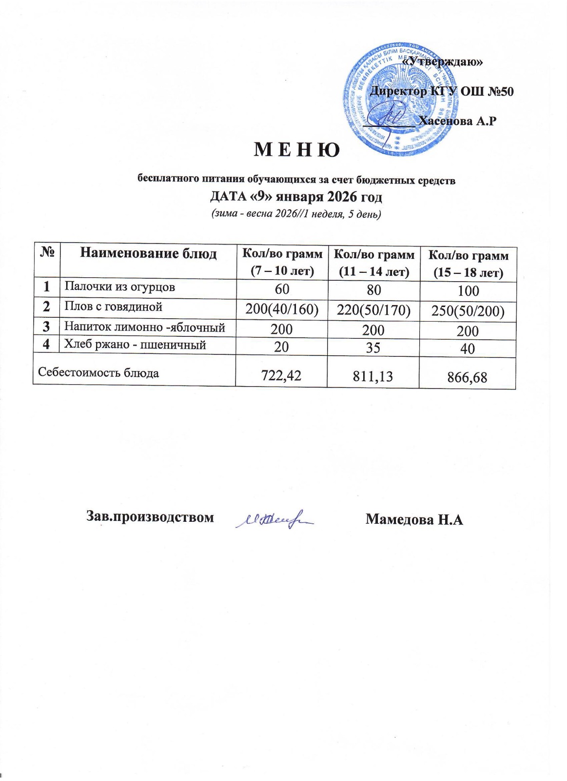 2024ж. 8 ақпан айына ас мәзір әні. МЕНЮ на 8 февраля 2024г